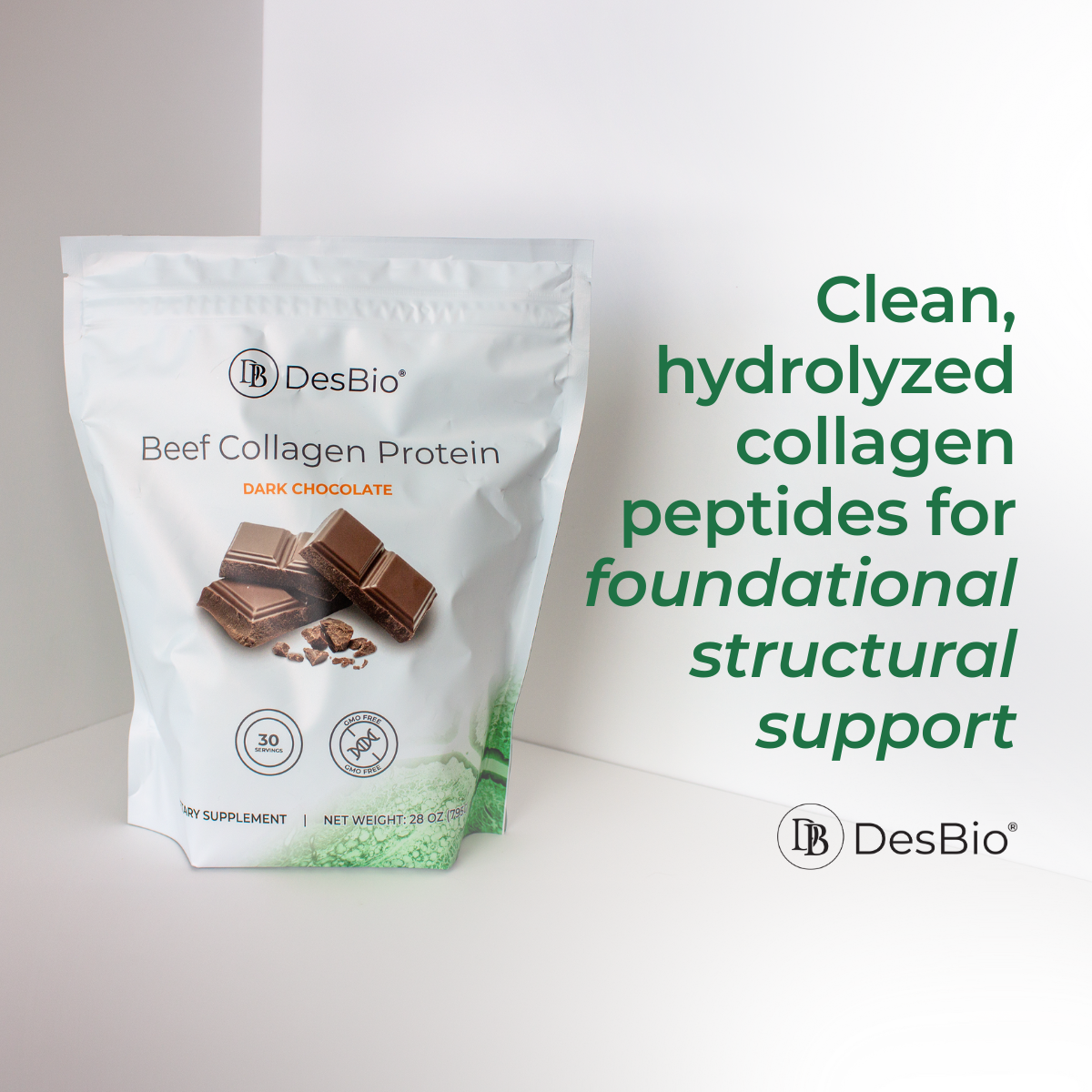 - Clean, hydrolyzed collagen peptides for foundational structural support