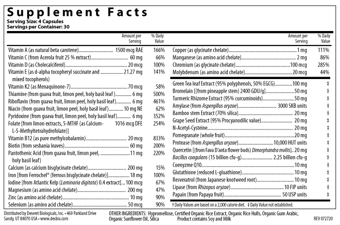 OmniEssentials is a multivitamin and mineral formula that incorporates whole-food vitamins with bioavailable micronutrients. With select specialty ingredients to support digestion, detoxification, and antioxidant activity, OmniEssentials provides the ultimate daily blend for health and well-being. Available with and without iron.