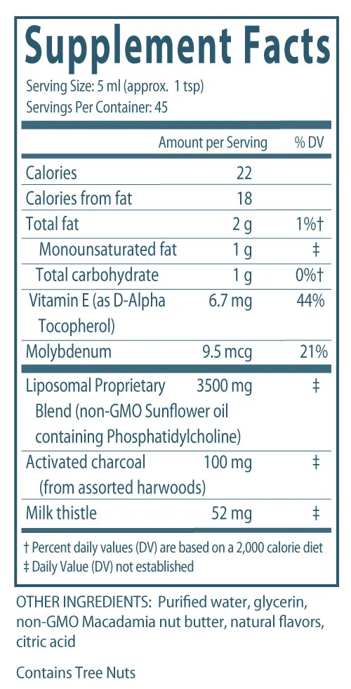 The Daily Bind provides activated charcoal and liver-supporting herbs and nutrients in a liposomal delivery system. Activated charcoal can support the body's regular elimination of toxins. This creamy and delicious blend is an excellent daily wellness formula or can accompany any detoxification or GI health program.